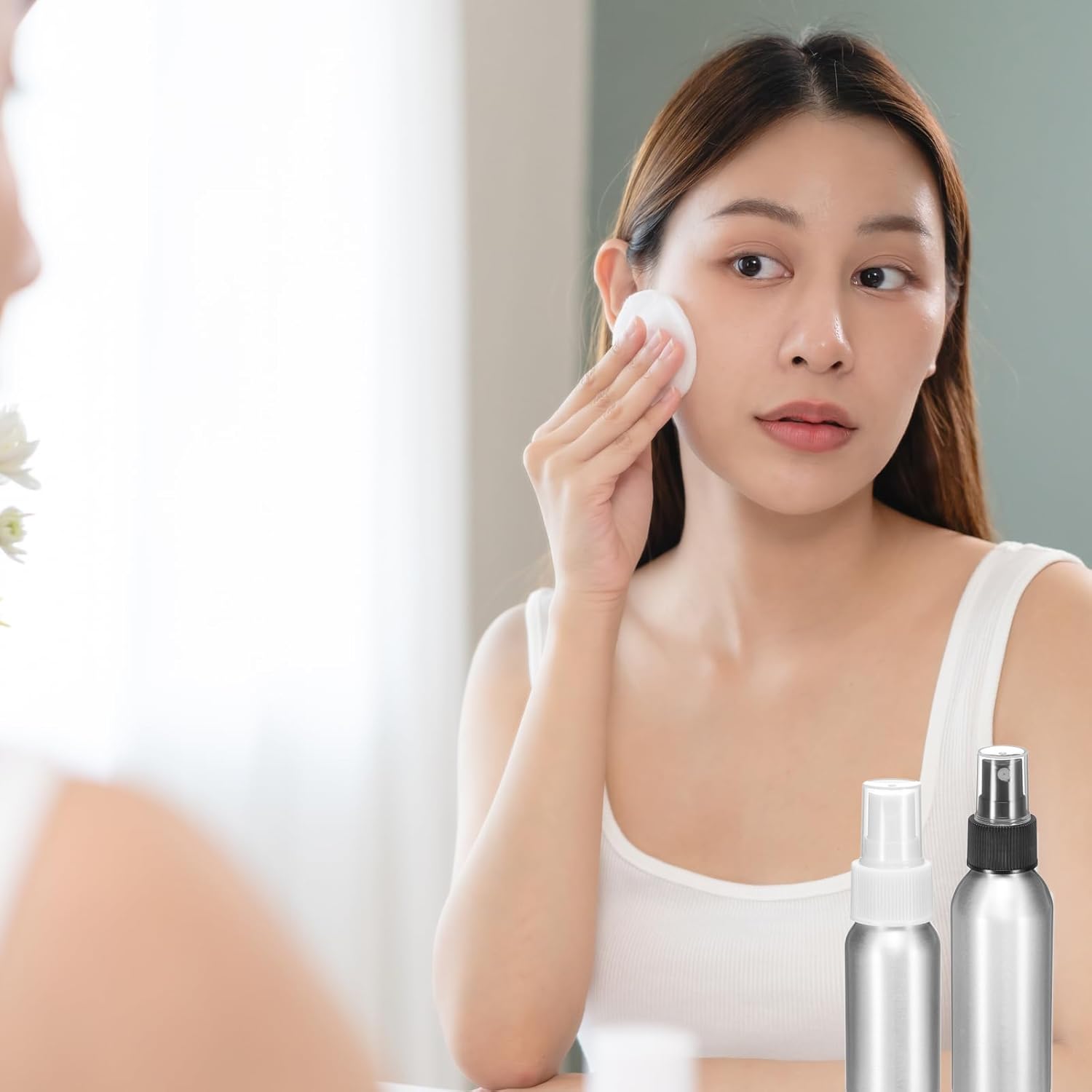 HARFINGTON Aluminum Fine Mist Spray Bottles 150ml/5oz Metal Small Liquid Alcohol Refillable Travel Container with White Plastic Nozzle Cap for Perfume Skincare Cosmetic Storage Bottle
