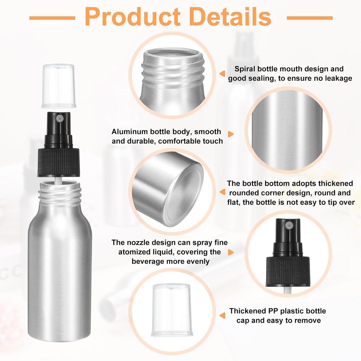 - Applications - This metal refillable container is widely used in kitchens, bathrooms, offices, travel vacations, etc., and can be used to store floral water, perfume, spray, essential oils, air freshener, toner, etc