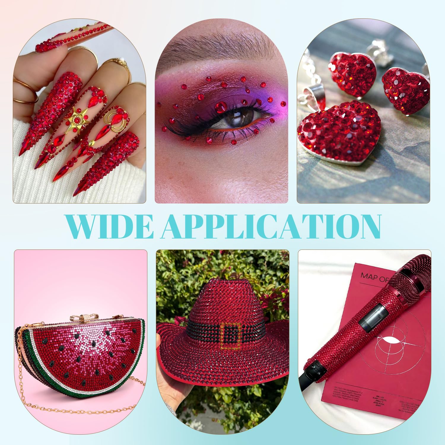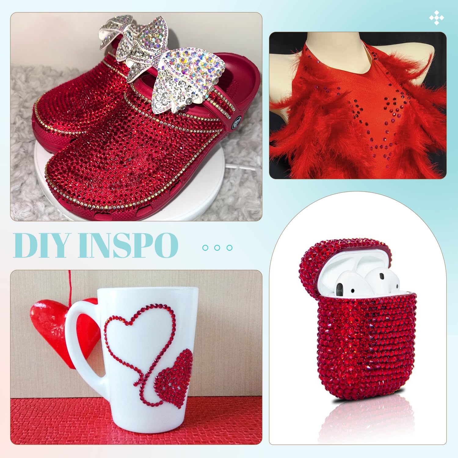 - WIDE APPLICATION -- These sparkling iridescent resin crystals are perfect for creating dazzling looks. Use them for bedazzling DIY crafts like shoes, tumblers, mugs, bottles, phone cases, popsockets, scrapbooks, photo frames, diamond paintings, greeting cards, bags, glasses, guitars, keychains, hats, masks, hair clips, bracelets, wristbands, clothing, wedding dresses, and more. Apply it to what you want to bling!