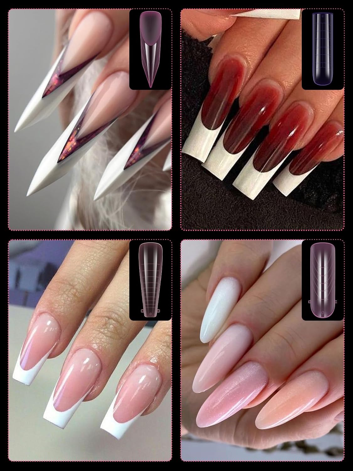 - 【Sturdy No C Curve Gel Nail Forms】Reusable extra long nail molds are made with high quality material, which is strong, tough, and reusable, providing you with a different lengths nail art experience that lasts.This artificial nails forms protective sleeve has a small handle on both sides, which is convenient for constructing gel nail extension nails, and will not stick to your hands, and can be easily removed after application.