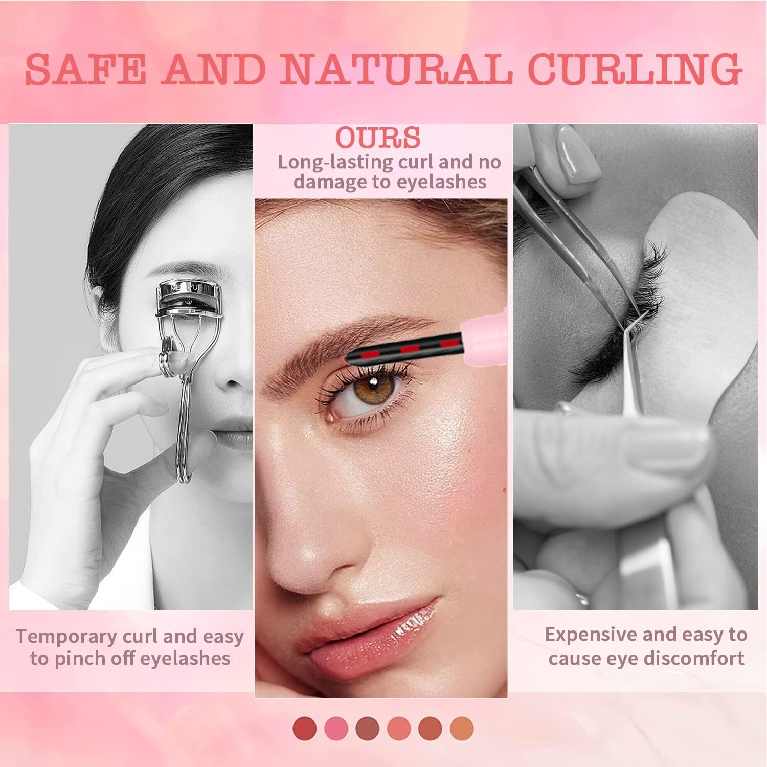 - 【3 Temperature Adjustable】 - Equipped with 3 temperature settings ranging from 45°c to 85°c, our heated lash curler can gently lifts and expertly curls your lashes, create amazing curling effect for different types of eyelashes. It can fast heat up within 10s and create amazing curling effect without crimping or pinching.