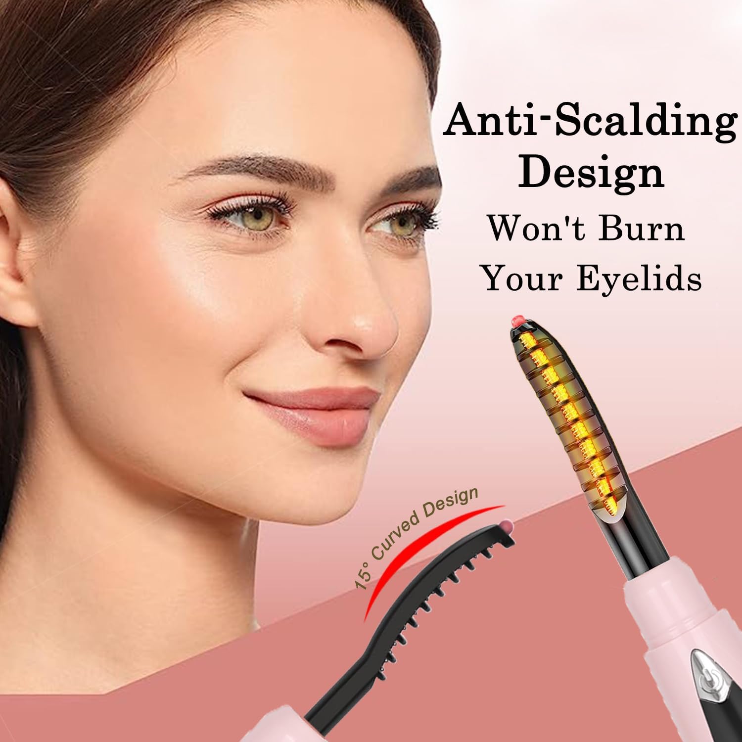 - 【Safe Anti-Scalding 】- No worry about any damage! 15° Arc shaped comb head can perfectly fit the contour of your eyelash. The heated eyelash curler thermal protection slot extends the distance between the heating wire and the eyelid, avoiding damage to your eyelid, helping you to create charming eye makeup safely and quickly.