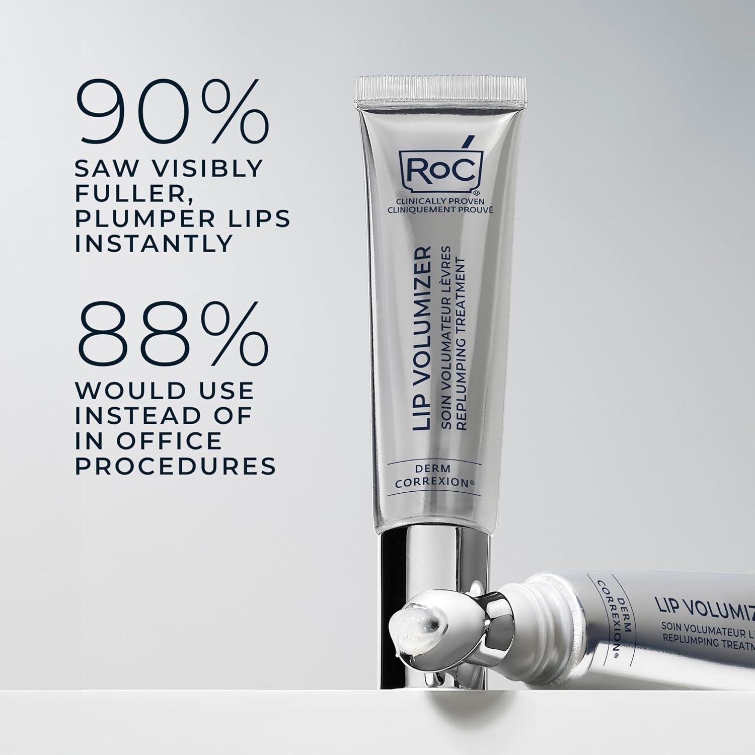 RoC Derm Correxion Lip Volumizer - Lip Plumper Peptide Treatment with Hyaluronic Acid & Vitamin E + Line Smoothing Eye Cream Packette