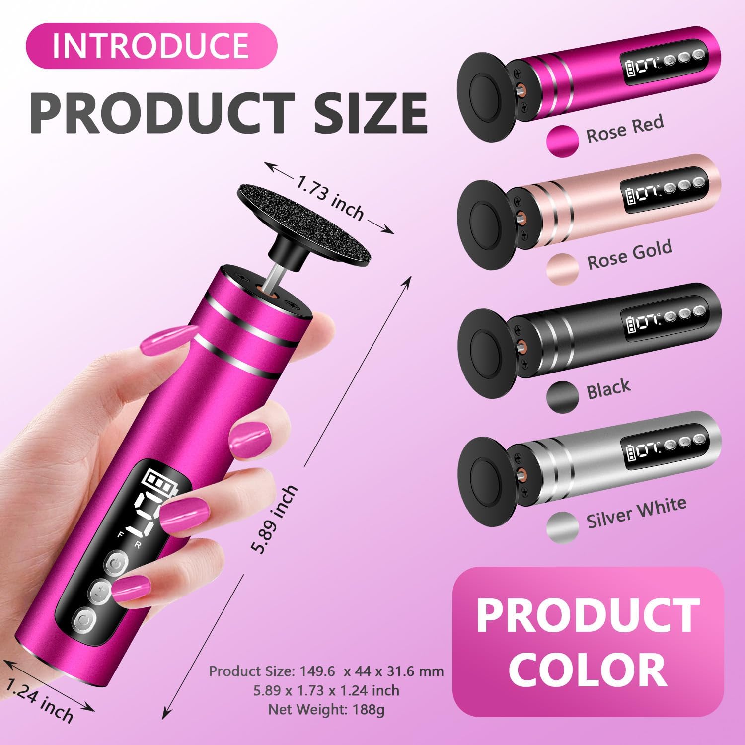 - ✅ Quality Material & Smart Digital Display – The body of callus remover is made of premium aluminum, multi-frequency motor mechanics, and high copper core, with plastic grinding heads, it is easy to clean with a wet cloth, More important, the digital display shows you the battery level, speed setting & rotation direction, preventing sudden shutdowns