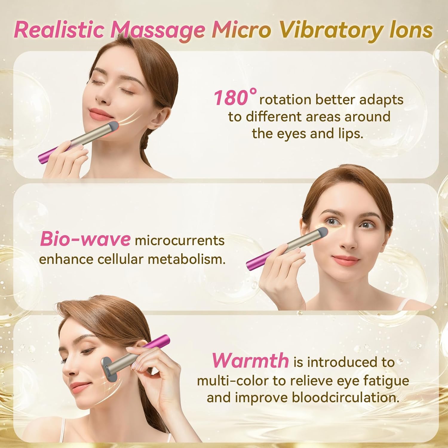 - Home Skincare: Enjoy convenient and efficient skincare at home, eliminating the need for beauty salon visits. The 180° rotating massage head ensures comprehensive care for every part of your skin, including the eyes, face, neck, hands, and back. For optimal results, use it 3-5 times a week for 5-10 minutes each session.
