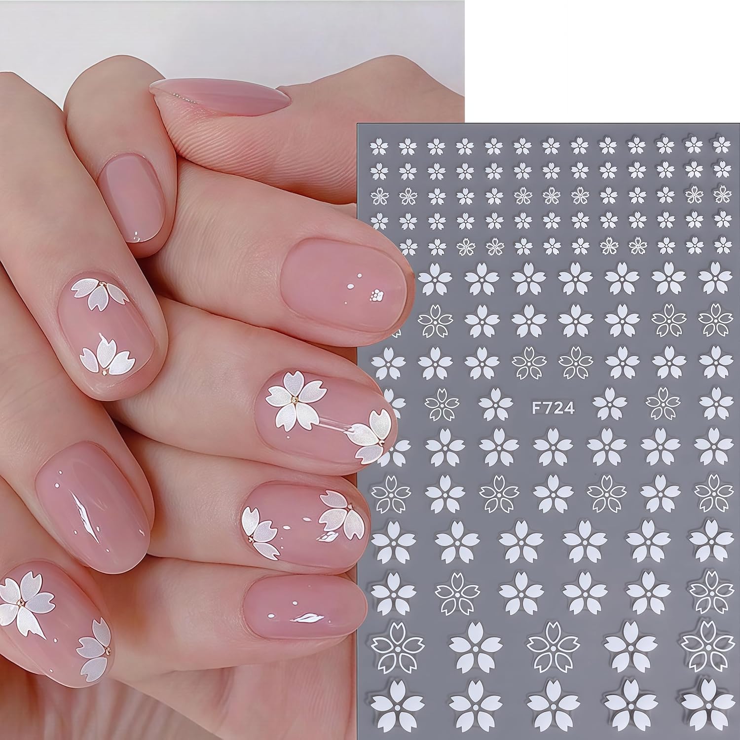 - White Cherry Blossoms Self-adhesive Design: 3D cute nail decals for nail art design is simple and quick to use, nail stickers work great on bare nails, they will stay on for a long time and will not peel off your nails, enjoy the feeling of nail art