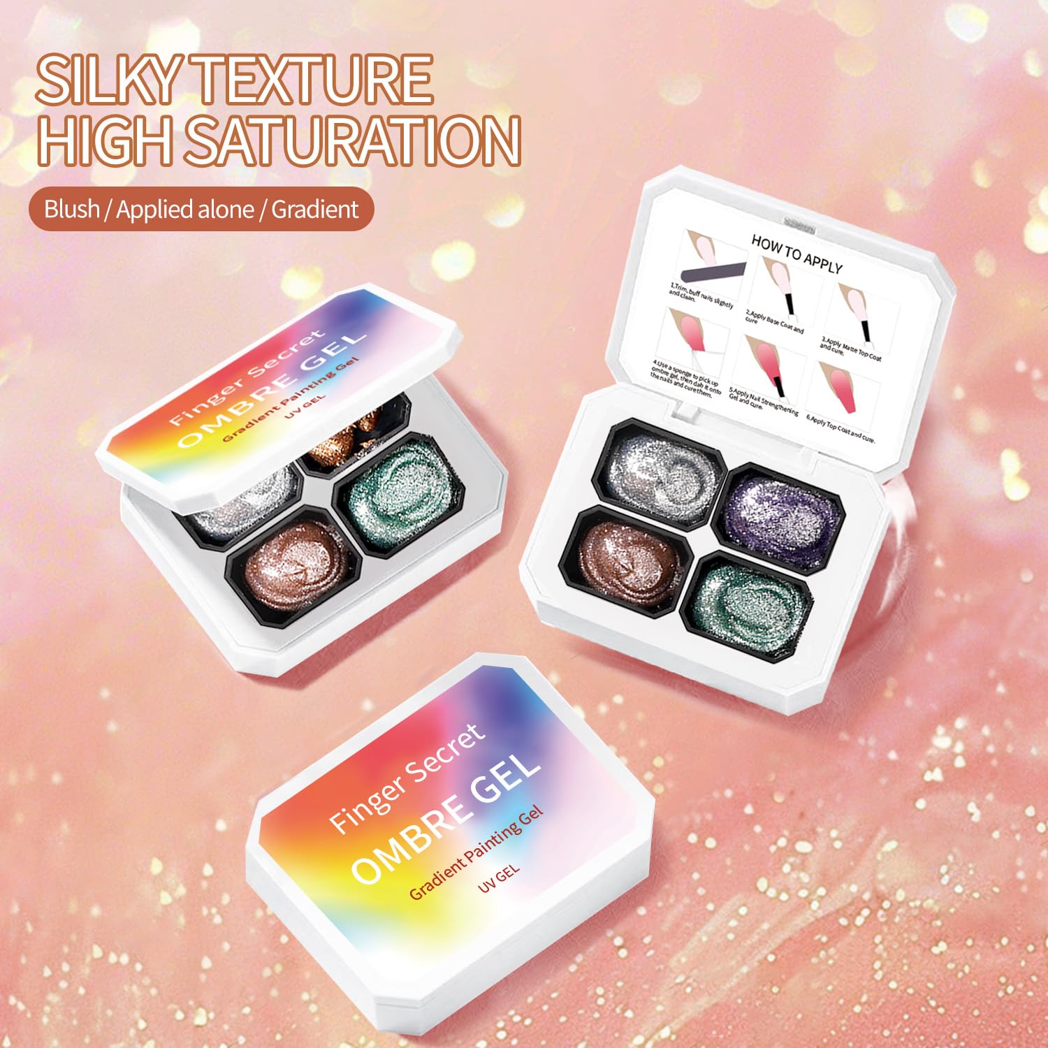 - Finger Secret Ombre Gel:The 4 colors set ombre gel meets the nail art needs of different seasons and scenarios. Moreover, the ombre gel nail polish set is lightweight and portable, allowing you to have shiny nail art all the time.