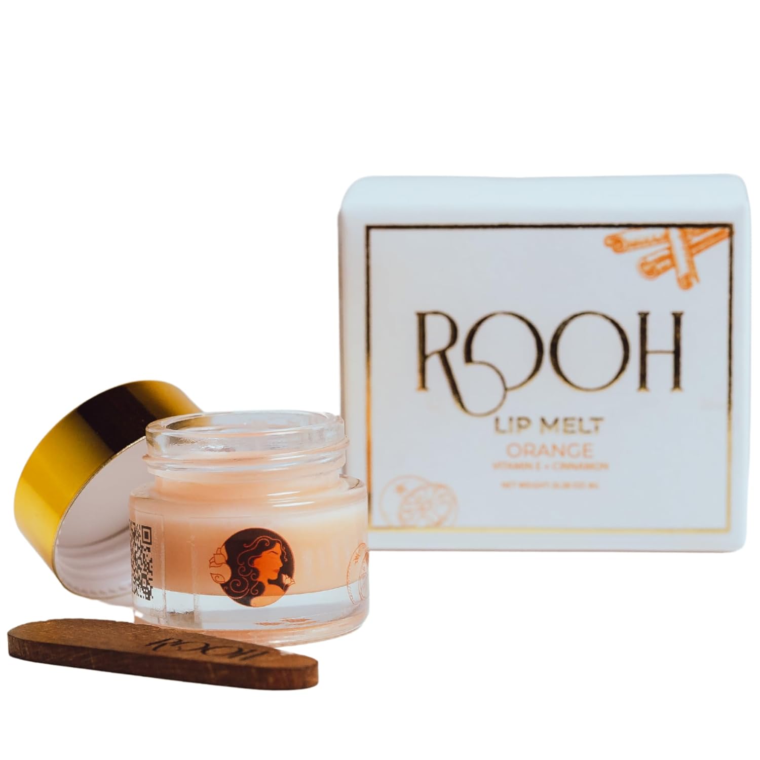 - Net Weight (Product): 50g Container Weight: 8g Gross Weight (with Packaging): 58g Dimensions (L x H): 10.5 cm x 1.5 cm Container Material: Glass Packaging: Paper Box Units per Package: 1 Included Accessory: Organic wooden spatula engraved with Rooh Beauty Logo