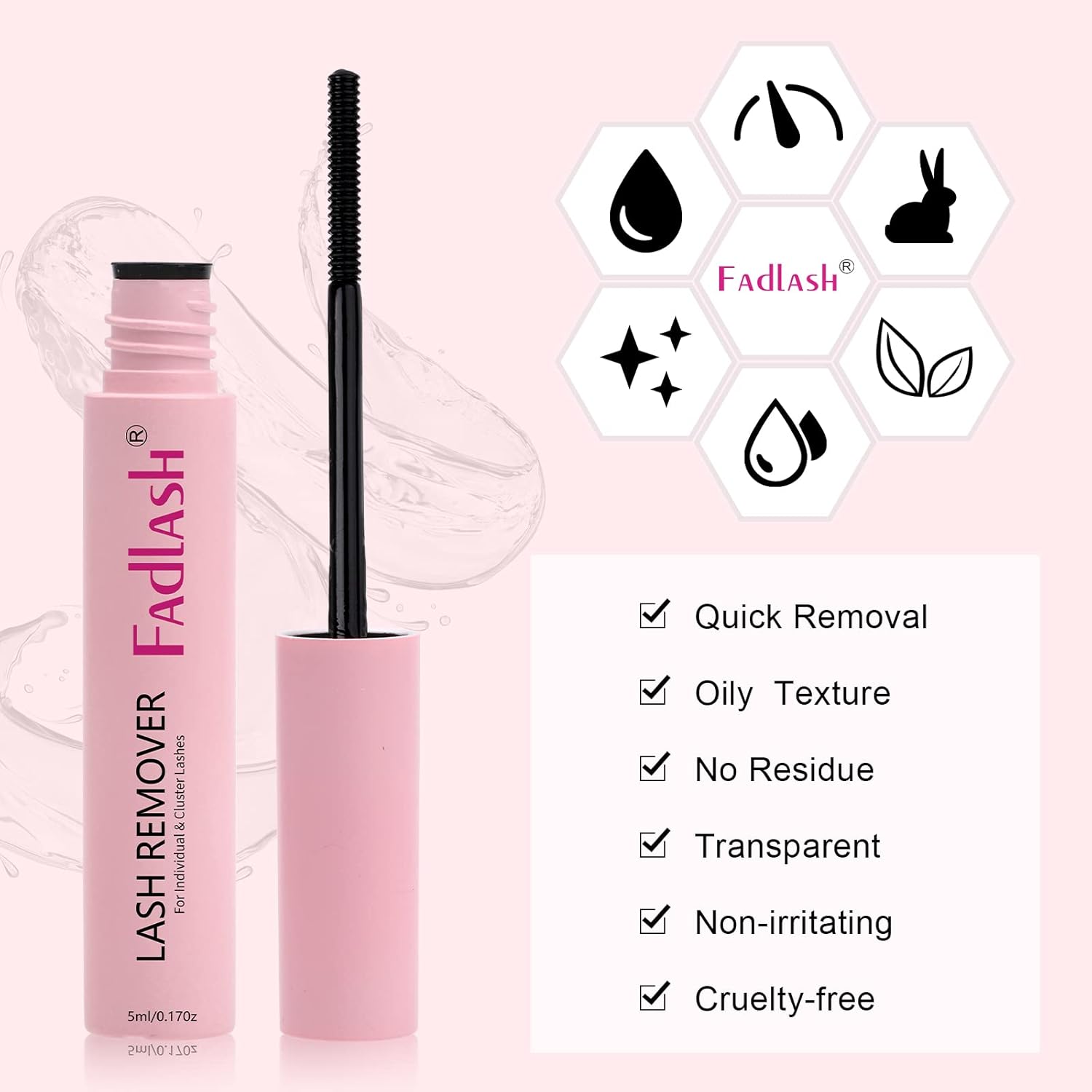 FADLASH Lash Glue Remover 5 ML for Cluster Lashes Soothing Oil Lash Remover Mascara Wand Eyelash Glue Remover Self Use at Home