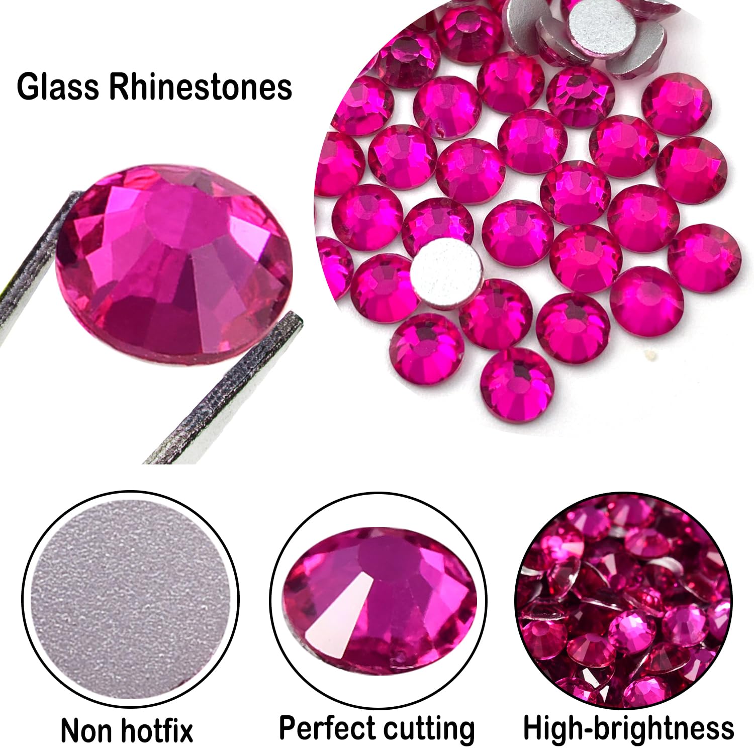 Flatback Glass Rhinestones,Bedazzler Gems 1440pcs Non Hotfix Crystal Rhinestones for Nail Charms Crafts Clothes Tumblers,Hot Pink,SS20