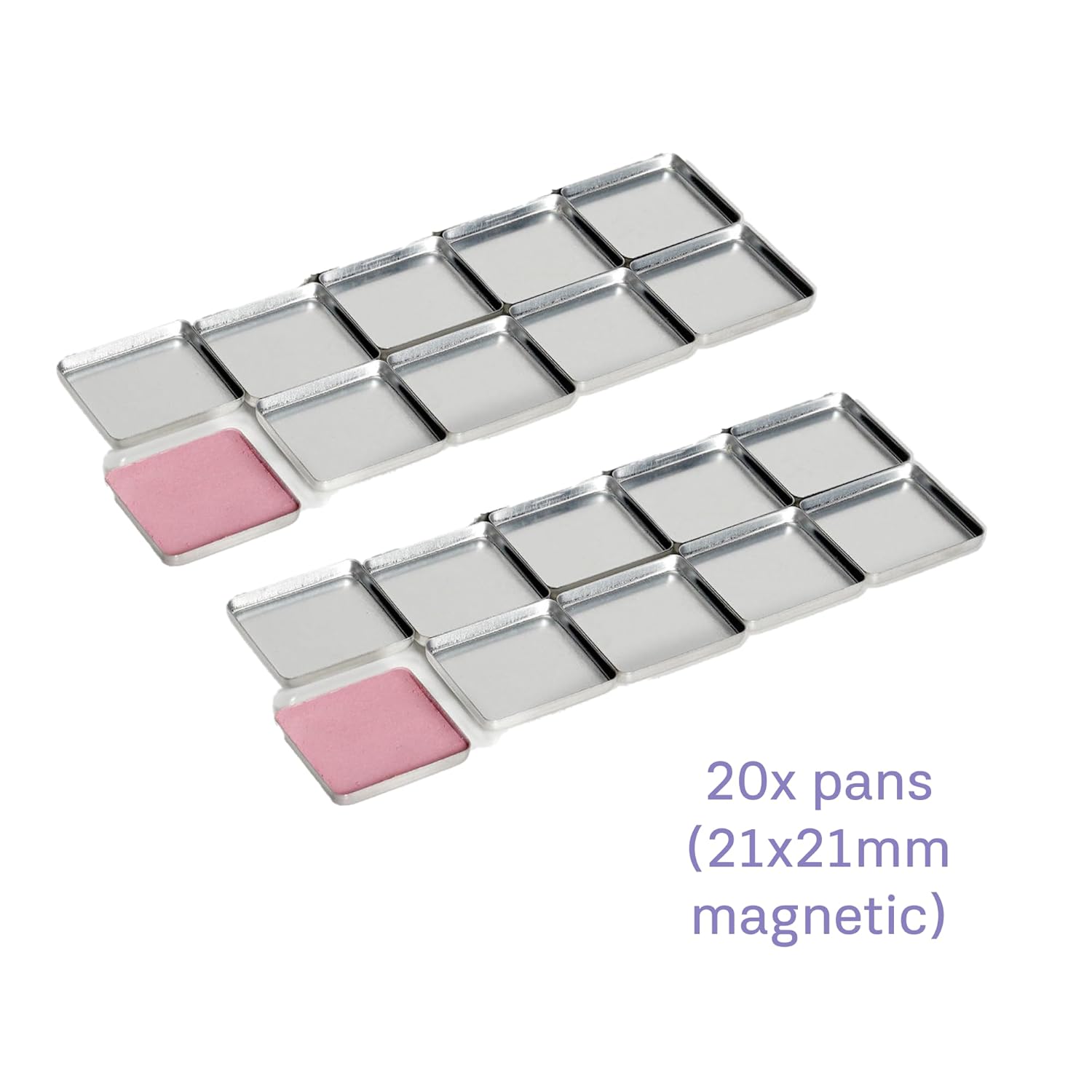 - DEPOT, CONQUER CLUTTER & SAVE SPACE: Experience the joy of depotting! Securely condense your collection into this versatile set of 5 MAGNETIC PALETTES, INCLUDING 20 METAL PANS (21MM). Fits standard pans (18x26mm, 8x37mm, 5x47mm), letting you mix brands and ditch bulky packaging. Everything you need is included!