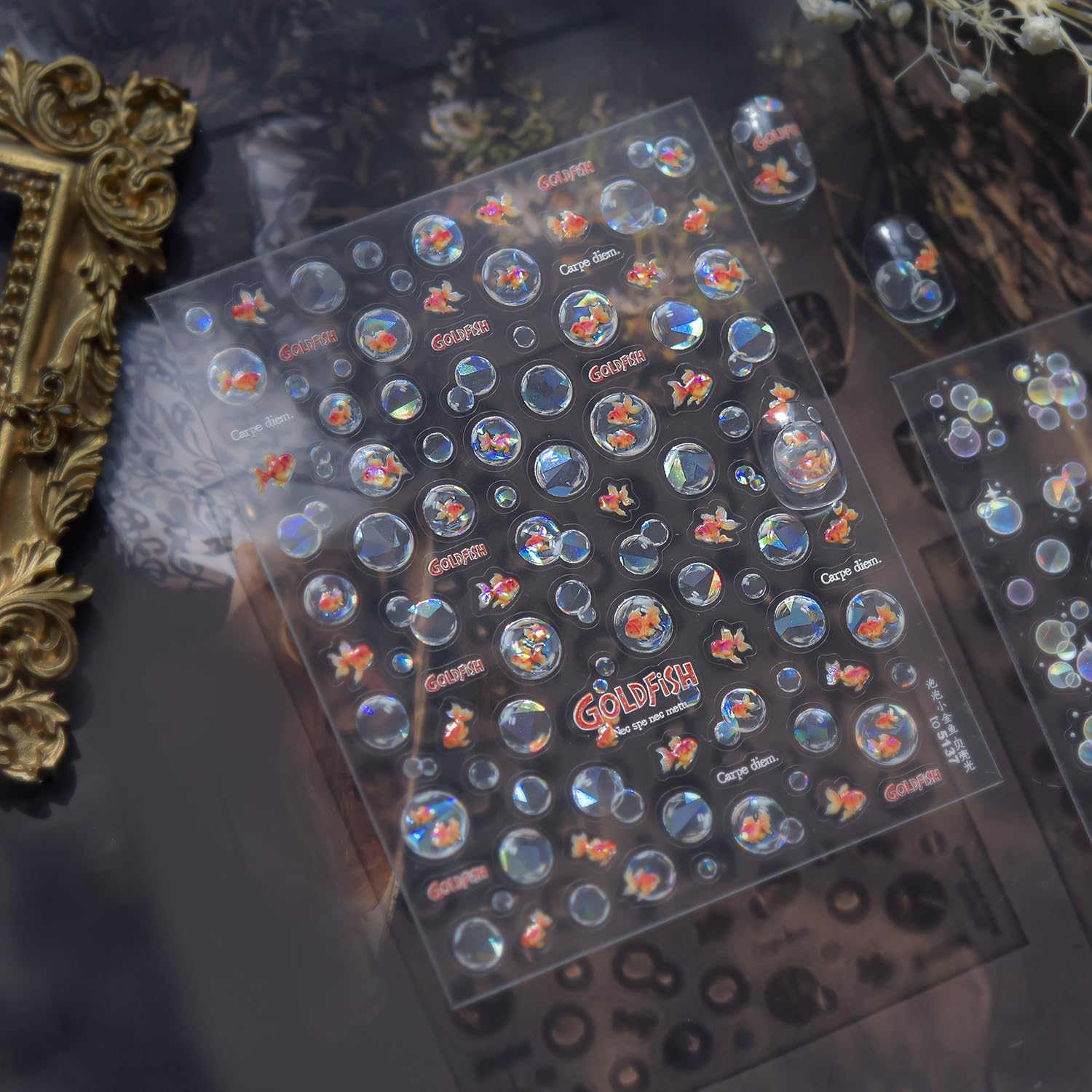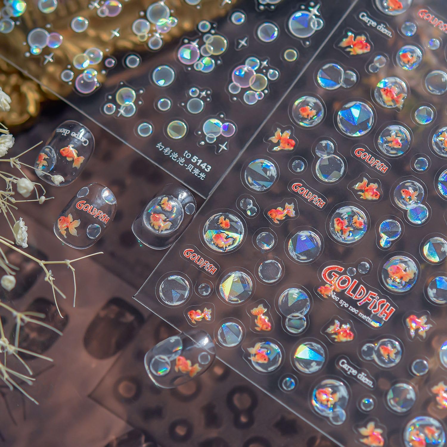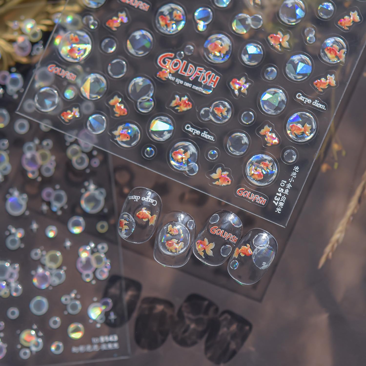 Goldfish Nail Art Stickers Sparkly Koi Fish Nail Stickers 5D Embossed Bubbles Chinese Style Manicure Decals Accessories Shell Light Goldfish Adhesive Slider for Women DIY Nail Art Decorations