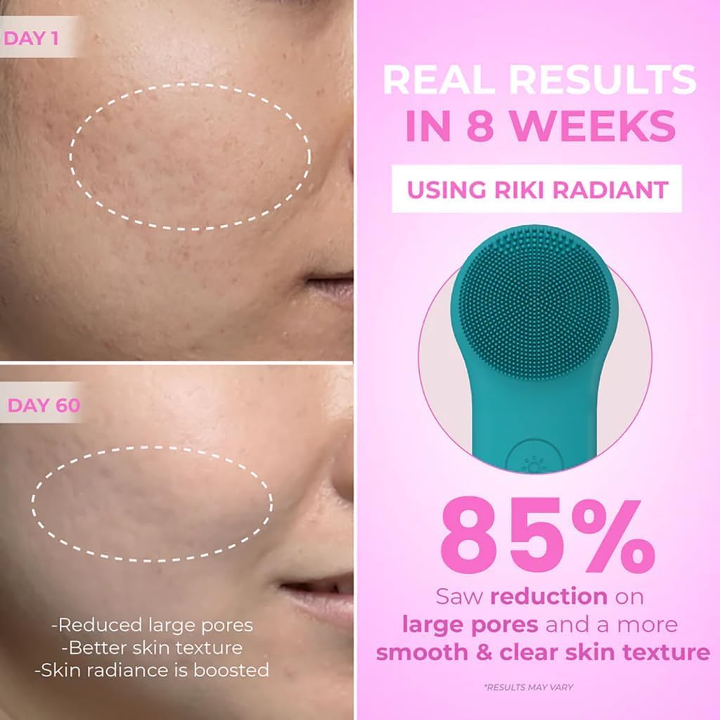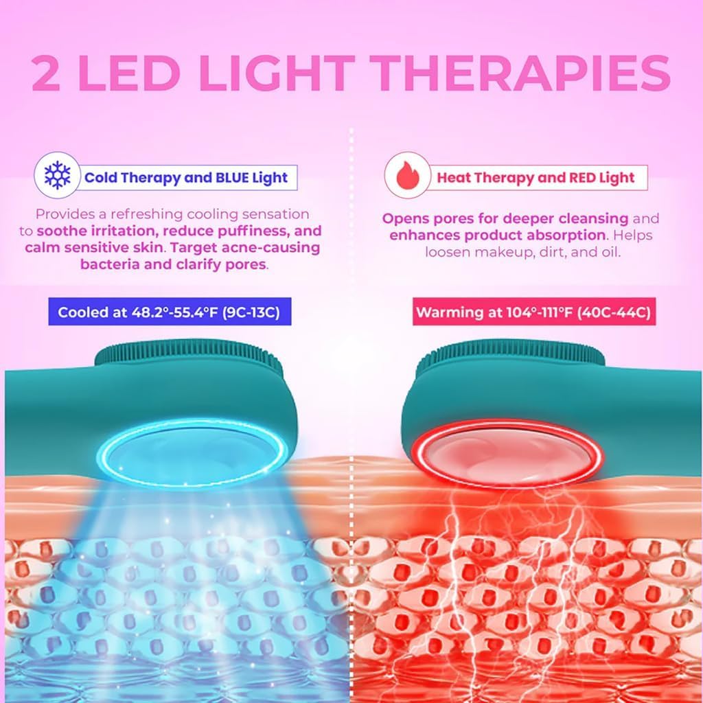 - Dual-Sided Design for 2-in-1 Skincare - Get the best of both worlds with the RIKI LOVES Silicone Facial scrubber. One side features fine, soft silicone bristles (in two sizes) for deep cleansing and gentle exfoliation. The other side delivers Heating, Cold Compress, and LED light therapy for a soothing spa experienceโall in one stylish device.