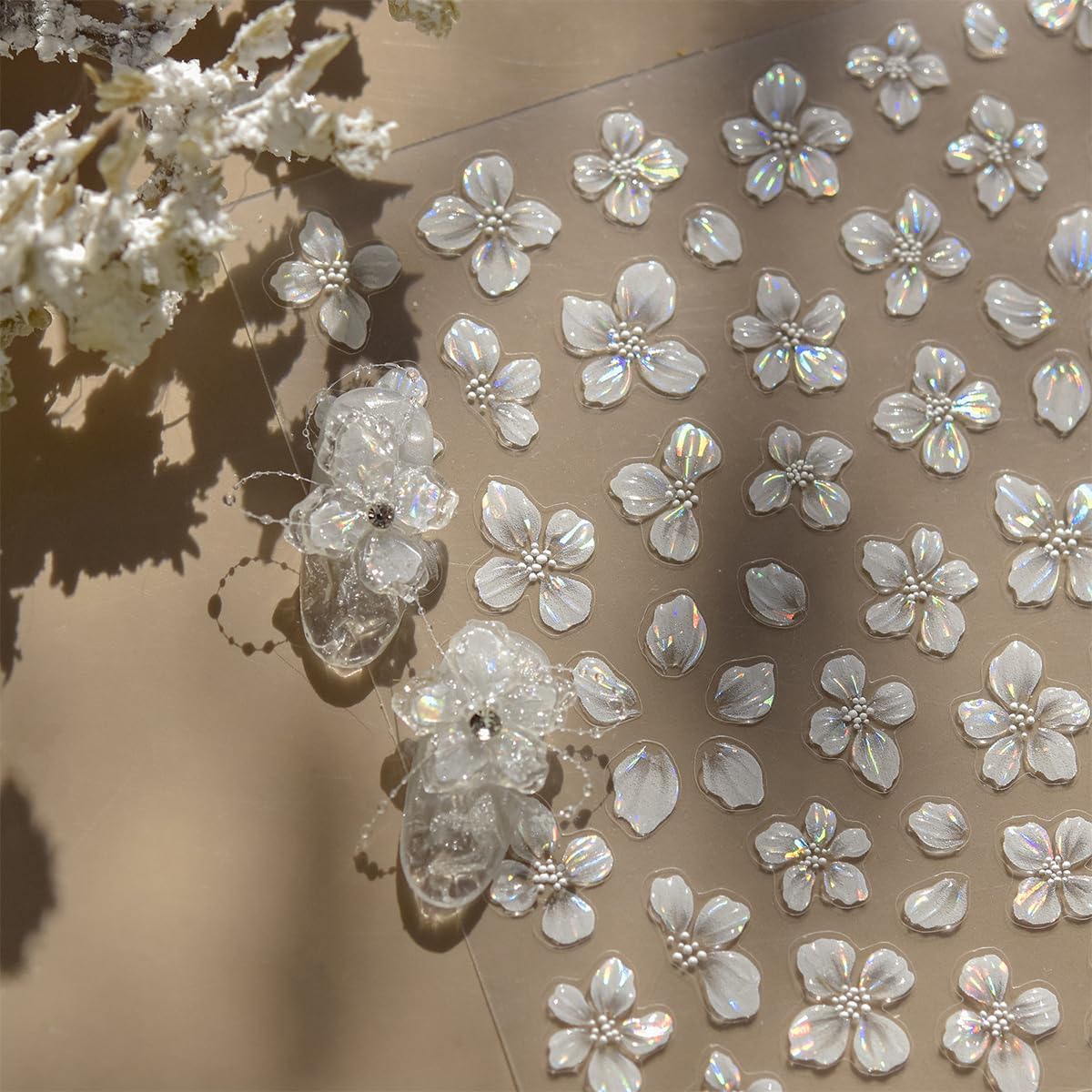 - Wide Application: These 5D flower stickers for nails are so easy to apply that you can stick them on various smooth surfaces as you like, such as cellphone, greeting cards, scrapbook, books and more, adding a more festive feeling.
