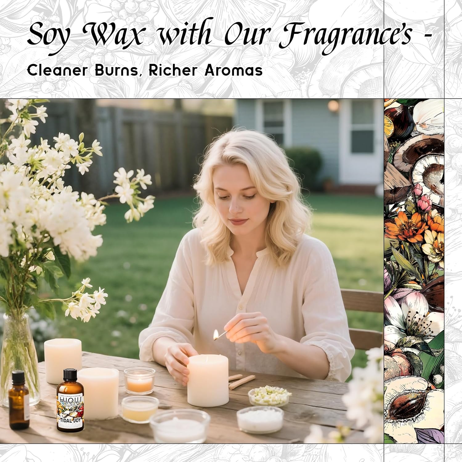 - DIY β Ideal for candle-making, soap-making, and perfume creation. Provides a rich fragrance in soy candles, melt-and-pour soaps, and other DIY home fragrance projects