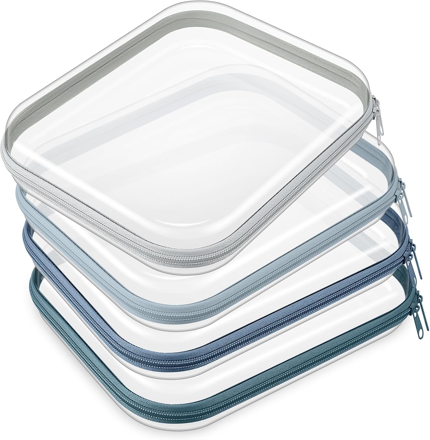 Hoolerry 4 Pcs Hard Clear Zipper Case Makeup Bags Plastic Pencil Pouch Transparent Storage Box Containers for Cosmetics, Snacks, Building Blocks, Puzzles(Morandi,9.8 x 7.9 x 2 in)