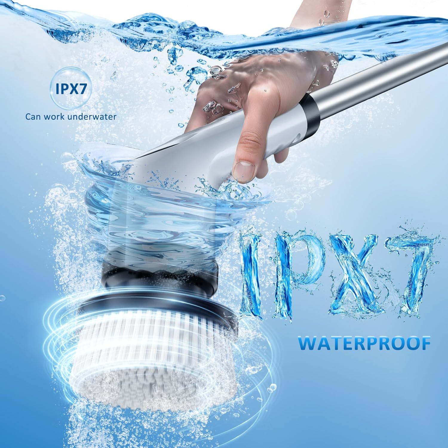 - IPX7 Waterproof Durability: The power scrubber features a tightly sealed design, achieving IPX7 waterproof rating, enabling use in moist environments. The cleaning brush heads can be washed directly under the faucet. Effortlessly clean shower rooms, bathtubs, stone floors, grouting, and crevices. The cordless design enhances cleaning efficiency, freeing you from tethering cords