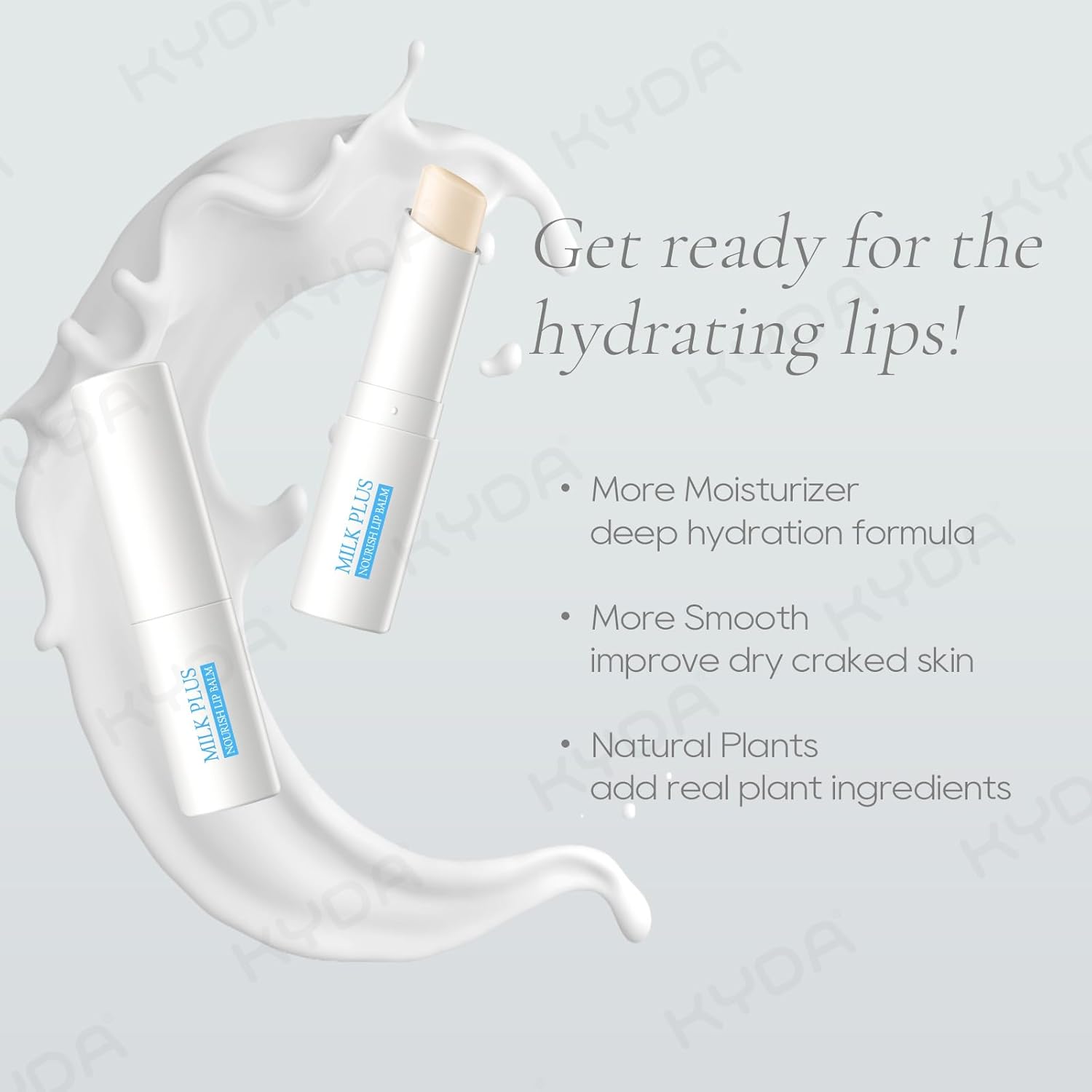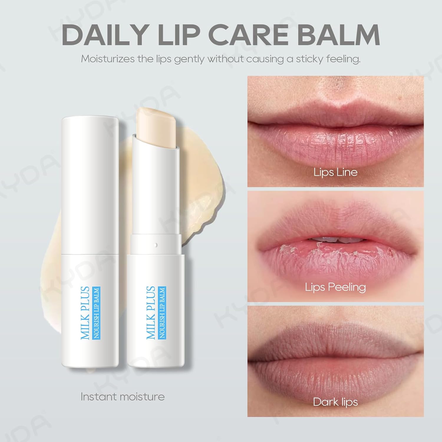 KYDA 3 Pcs Milk Moisturizing Lip Balm, Nourishes, Hydrates and Softens Dry Cracked Lips, Reduce Fine Lines, Deep Hydrating Lip Care Balm, Colorless Finish