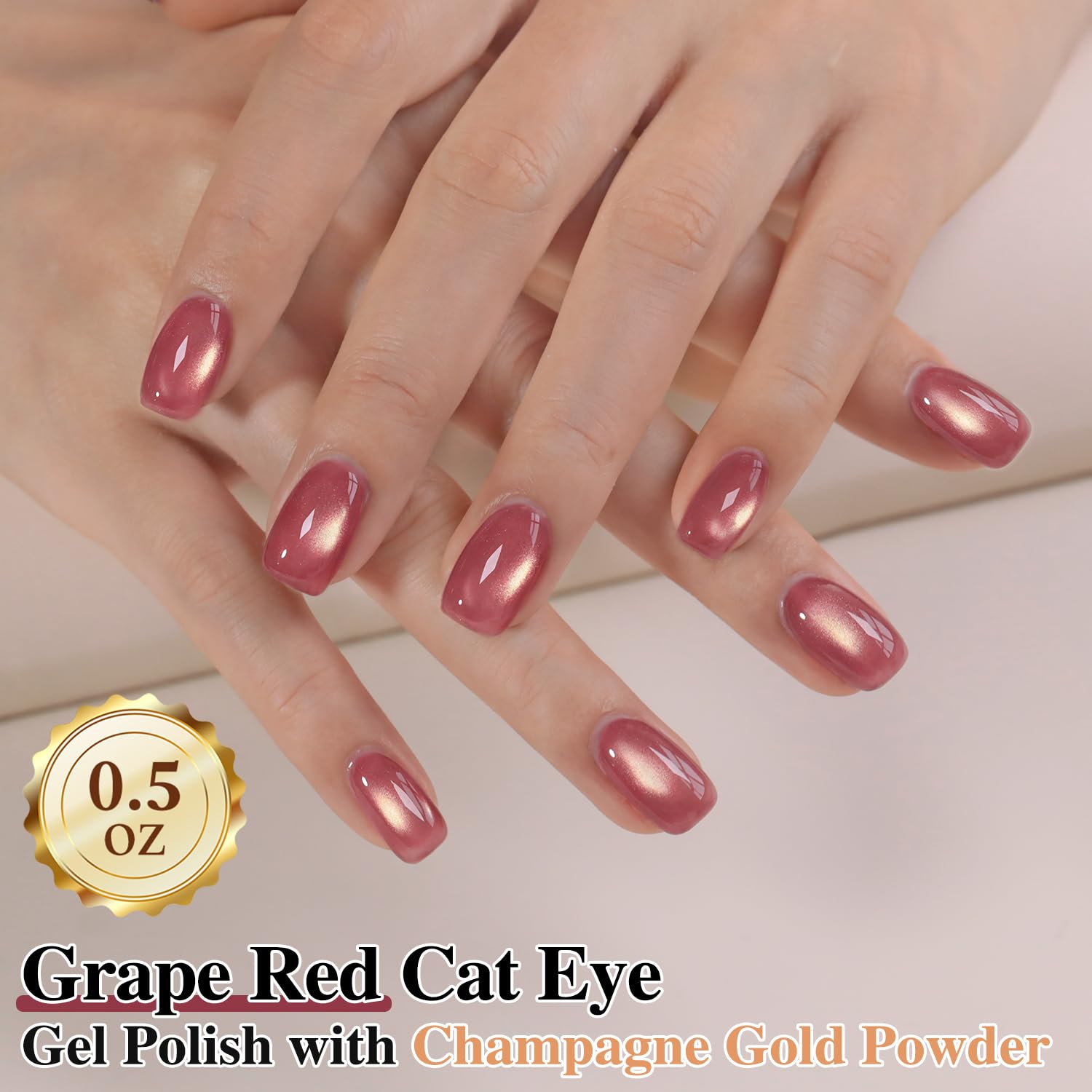 Double Rhythm 0.5 Oz Cat Eye Gel Polish with Magnet Same Color Same Bottle Holographic Glitter Shimmer Translucent Color Salon 15 ML Magnetic Nail Art (Grape Red-MC1270)