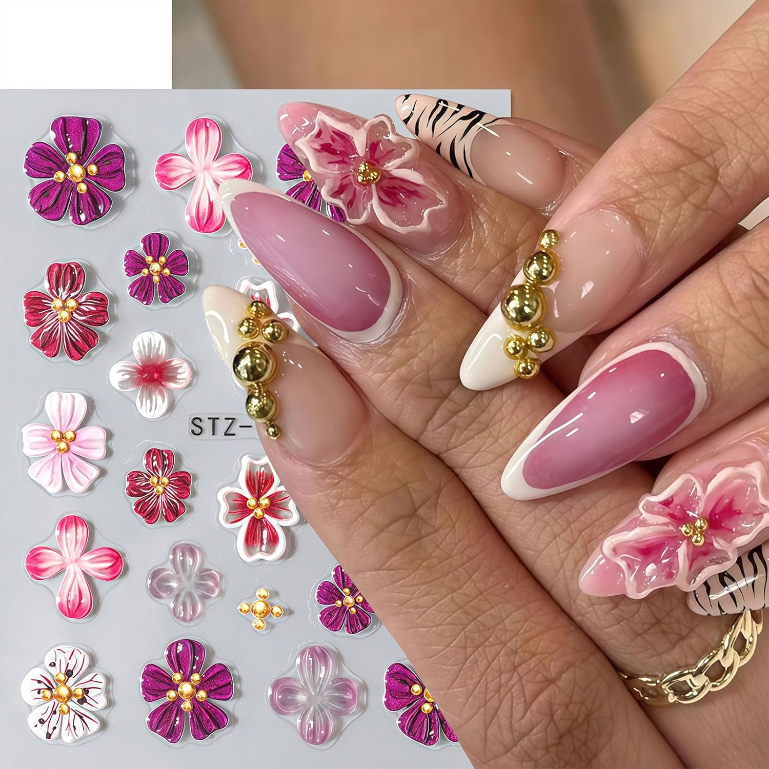 - ăFlower Nail Art StickersăYou will get 4 sheets 3d flower nail stickers for nails salon, many cute flower pattern for you to choose, colorful floral nail designs, and satisfy your rich imagination of nail DIY.