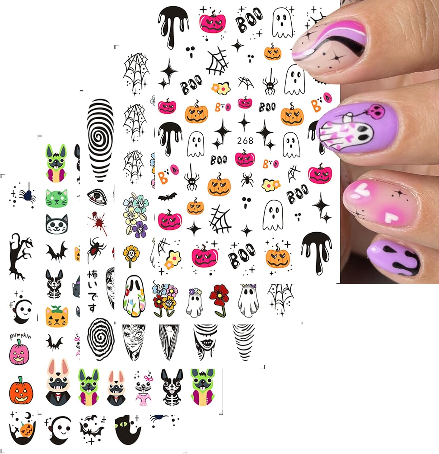 - Halloween/Fall Nail Art: You will get 6 sheets of cute anime Halloween theme nail art stickers, which can add a strong fashion atmosphere. Perfect for women and girls, exquisite nail design, DIY fashion nail decoration.