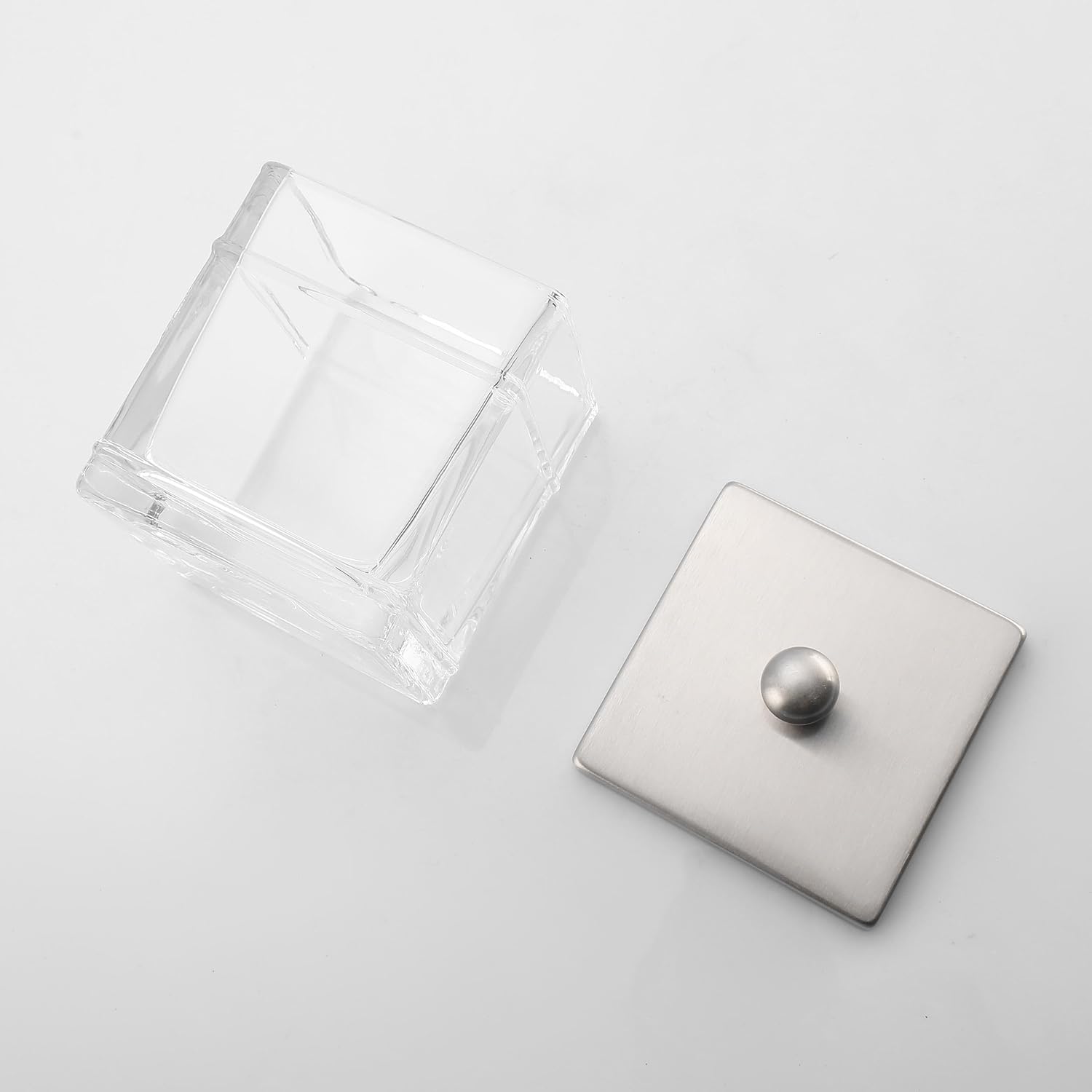 Glass Cotton Jar Holder 2 Pack– Satin Nickel Lid, Elegant Bathroom Storage Canister for Qtips, Cotton Balls, Floss, Makeup Organizer, Vanity & Bathroom Organization