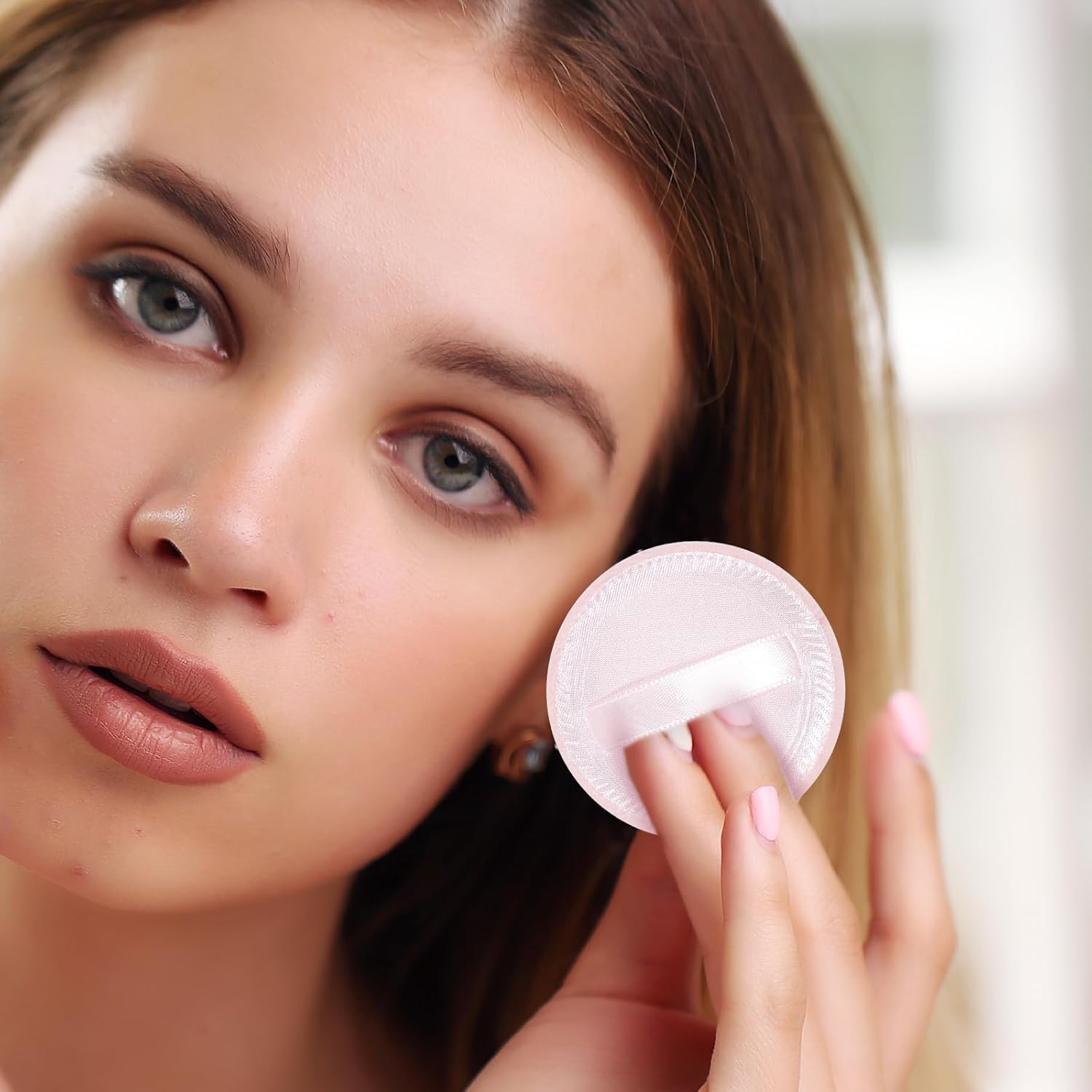 - Round Powder Puffs: Our makeup powder puff are perfect for applying foundation, loose powder, and other makeup products for a more natural look. Each makeup puffs for powder comes with a ribbon on the back for a secure grip, preventing makeup powder puff from slipping during application.