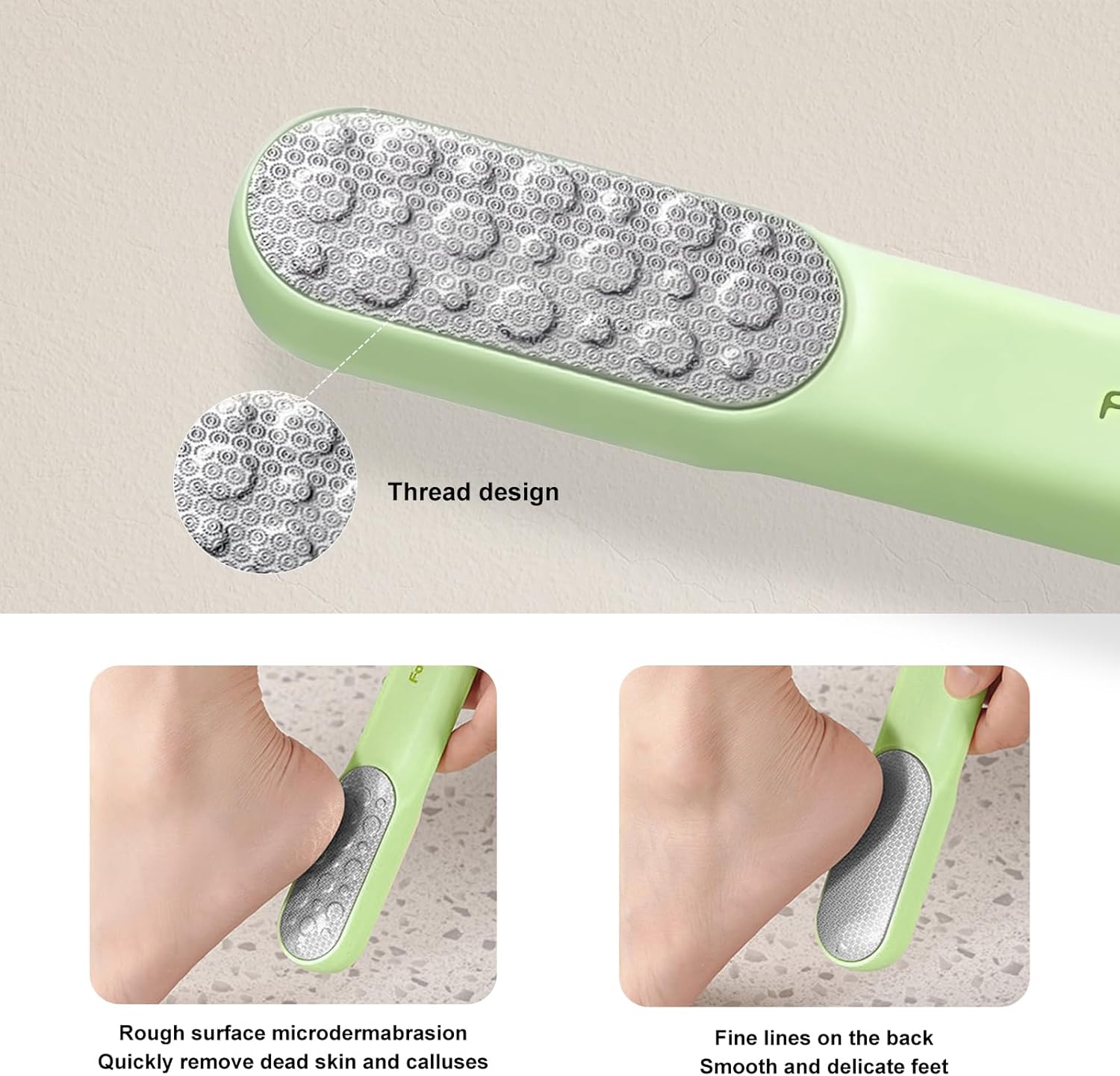 - Tired of rough feet? Our foot scrubber removes dead skin, calluses & corns. Threaded design deep-cleans cuticle debris for smooth, sandal-ready feet—easy at-home care