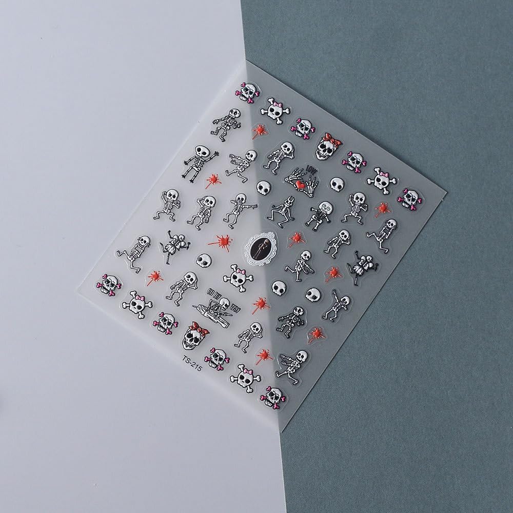 Halloween Nails Stickers Skeleton Nails Sticker 3D Embossed Red Blood Skull Self Adhesive Sticker Nail Decals Funny Skeleton Body Nail Art Decal Halloween Decals for Nail DIY Manicure 1Sheet