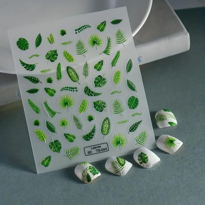 Fall Nails Stickers Monstera Leaves Nails Sticker 5D Embossed Banana Leaf Self Adhesive Sticker Nail Decals Green Leaves Thanksgiving Nail Art Decal Halloween Decals for Nail DIY Manicure 1Sheet