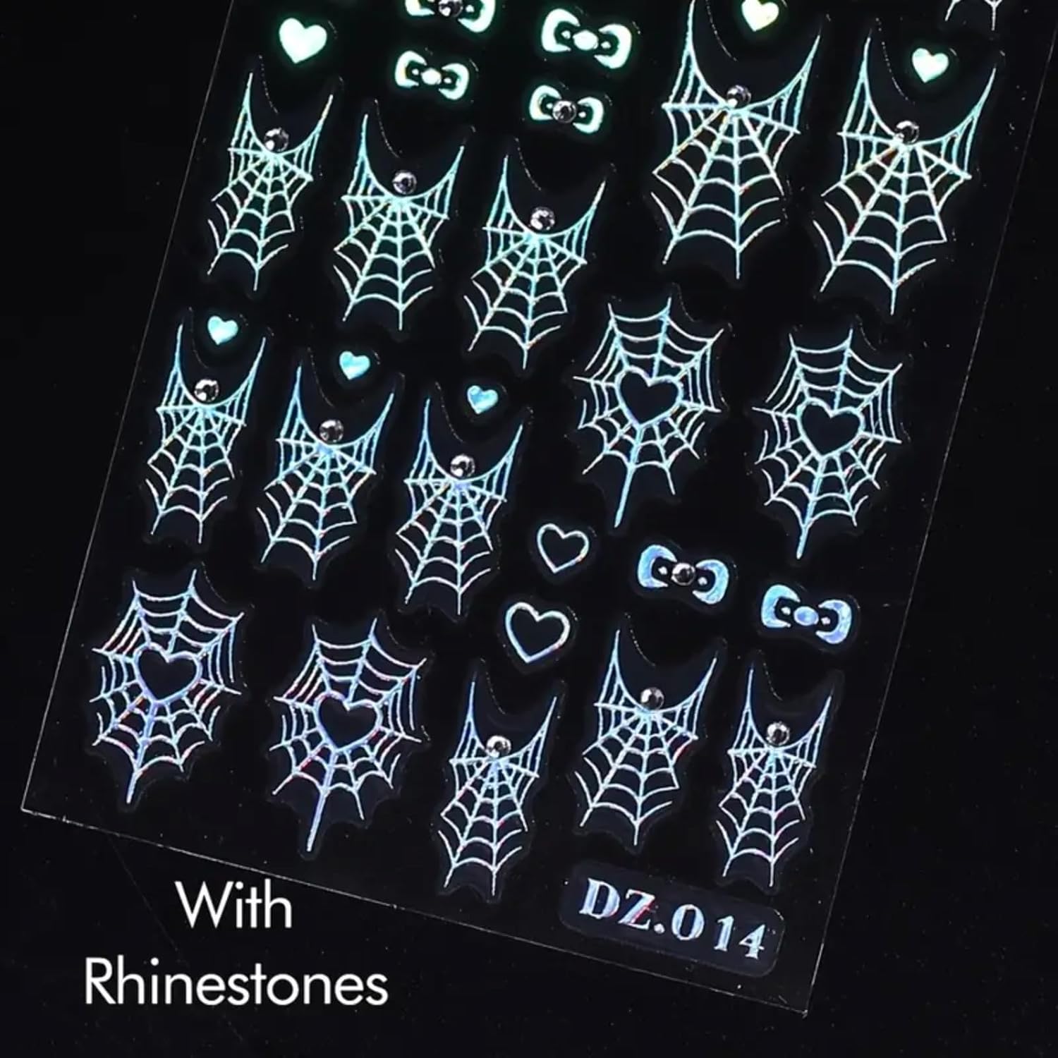 Halloween Nail Art Stickers Decals 4PCS Laser Silver Spider Web Spider Nail Decals with Rhinestone Spider Web Bow Heart Spider Nail Art Supplies Cute Nail Stickers for Women Halloween Manicure Decor